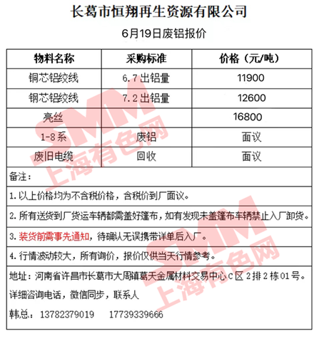 6月19日长葛恒翔 废铝采购报价