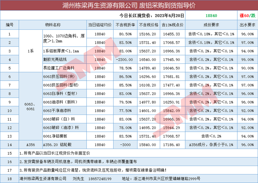 6月20日湖州栋梁再生 废铝采购报价