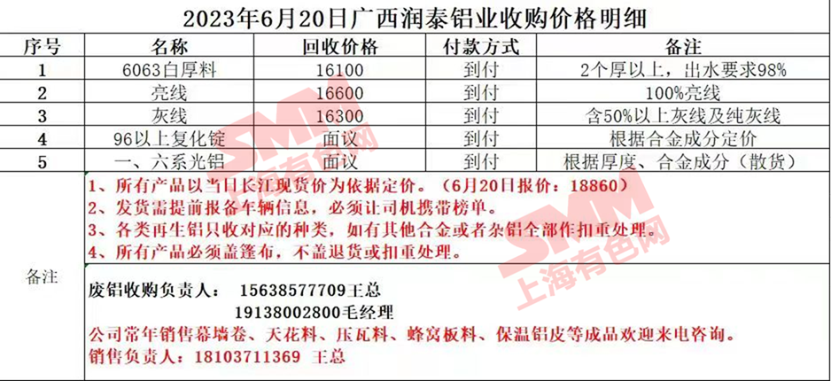 6月20日广西润泰铝业 废铝采购报价