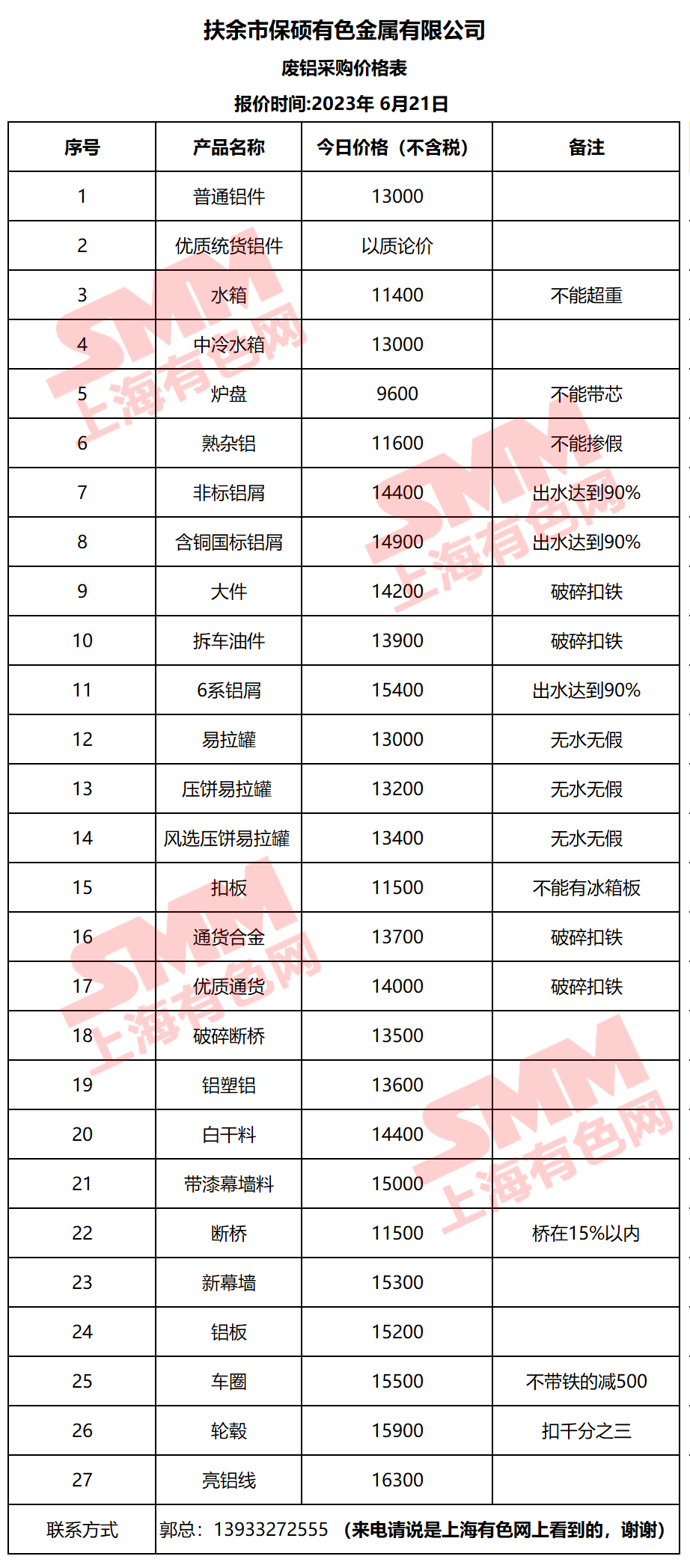 今日扶余市保硕有色金属有限公司 废铝采购报价已更新,有货的朋友欢迎联系我们!