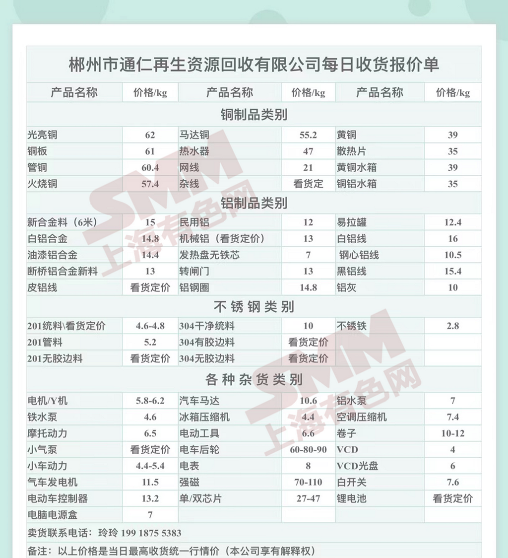 今日郴州市通仁再生资源回收有限公司 废金属收购报价已更新,有货的朋友欢迎联系我们!