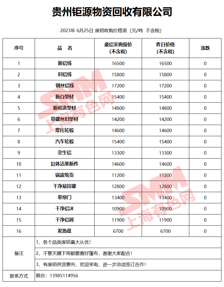 今日贵州钜源物资回收有限公司 废铝采购报价已更新,有货的朋友欢迎联系我们!