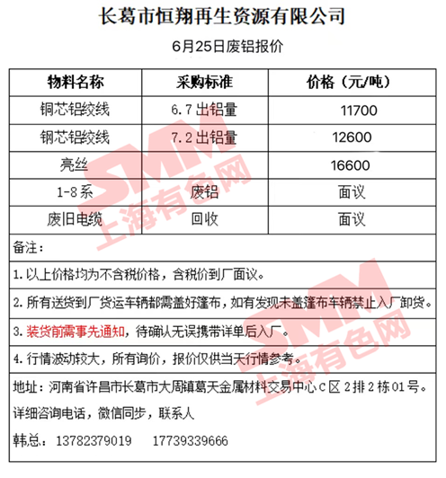 今日长葛恒翔 废铝采购报价已更新,有货的朋友欢迎联系我们!