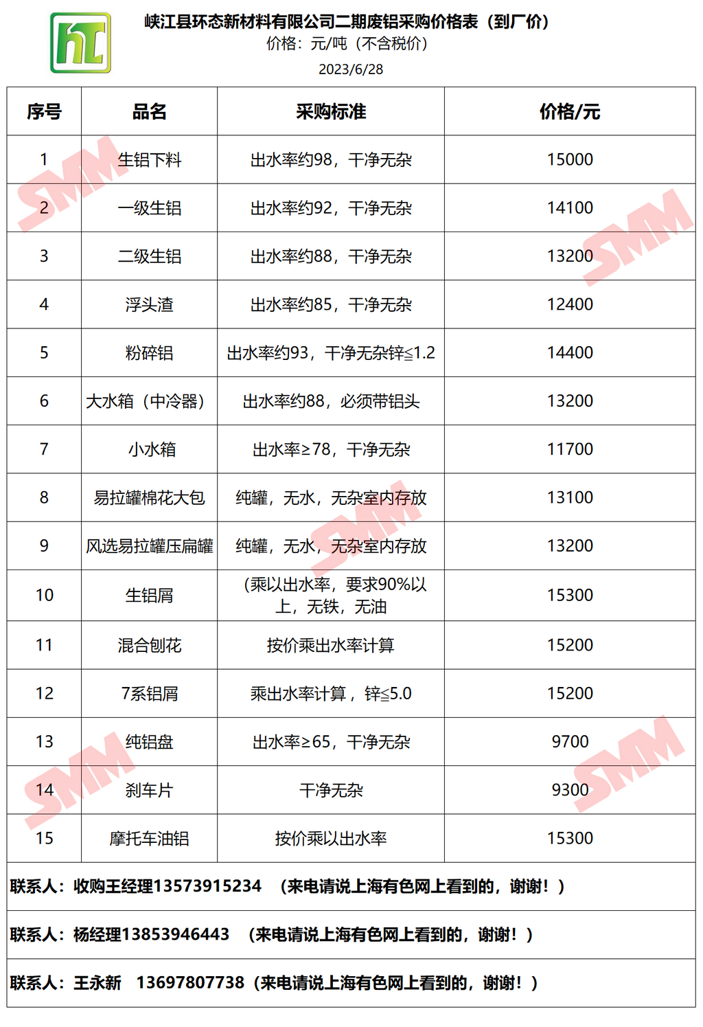 再生金属企业报价合作需求,欢迎联系:13585952056 王