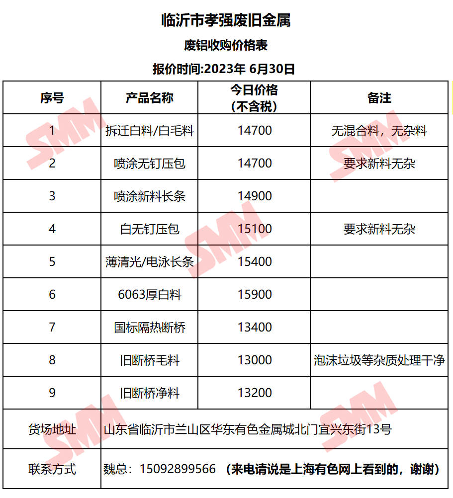 今日临沂市孝强废旧金属 废铝收购报价已更新,有货的朋友欢迎联系我们!