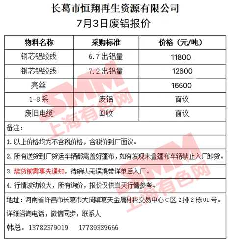 今日长葛恒翔 废铝采购报价已更新,有货的朋友欢迎联系我们!
