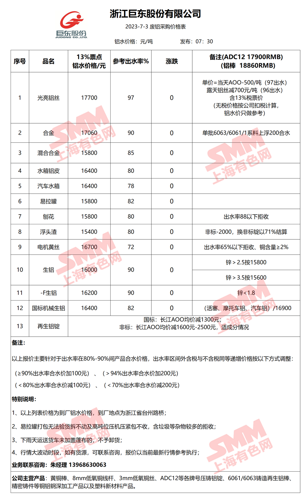 今日浙江巨东 废铝采购报价已更新,有货的朋友欢迎联系我们!