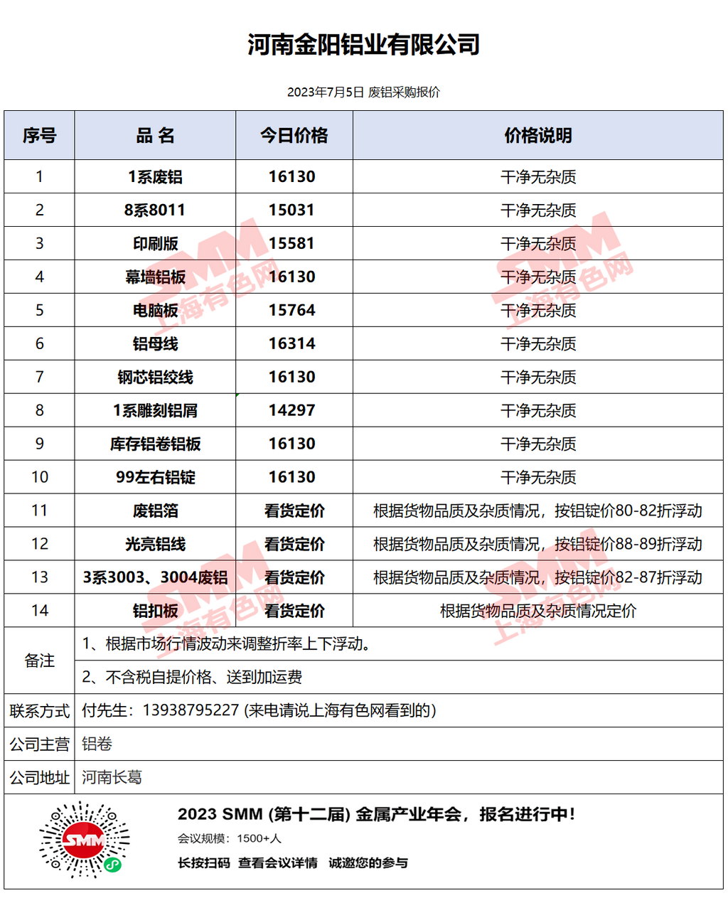 今日河南金阳铝业有限公司 废铝采购报价已更新,有货的朋友欢迎联系我们!