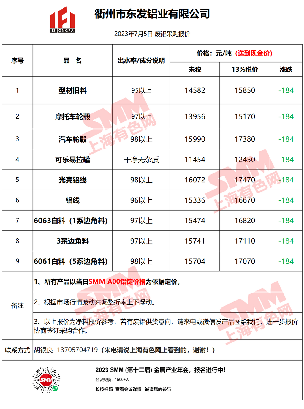 今日衢州东发 废铝采购报价已更新,有货的朋友欢迎联系我们!