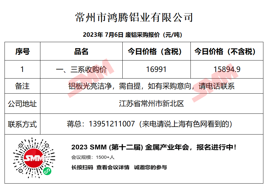 今日常州市鸿腾铝业有限公司 废铝采购报价已更新,有货的朋友欢迎联系我们!
