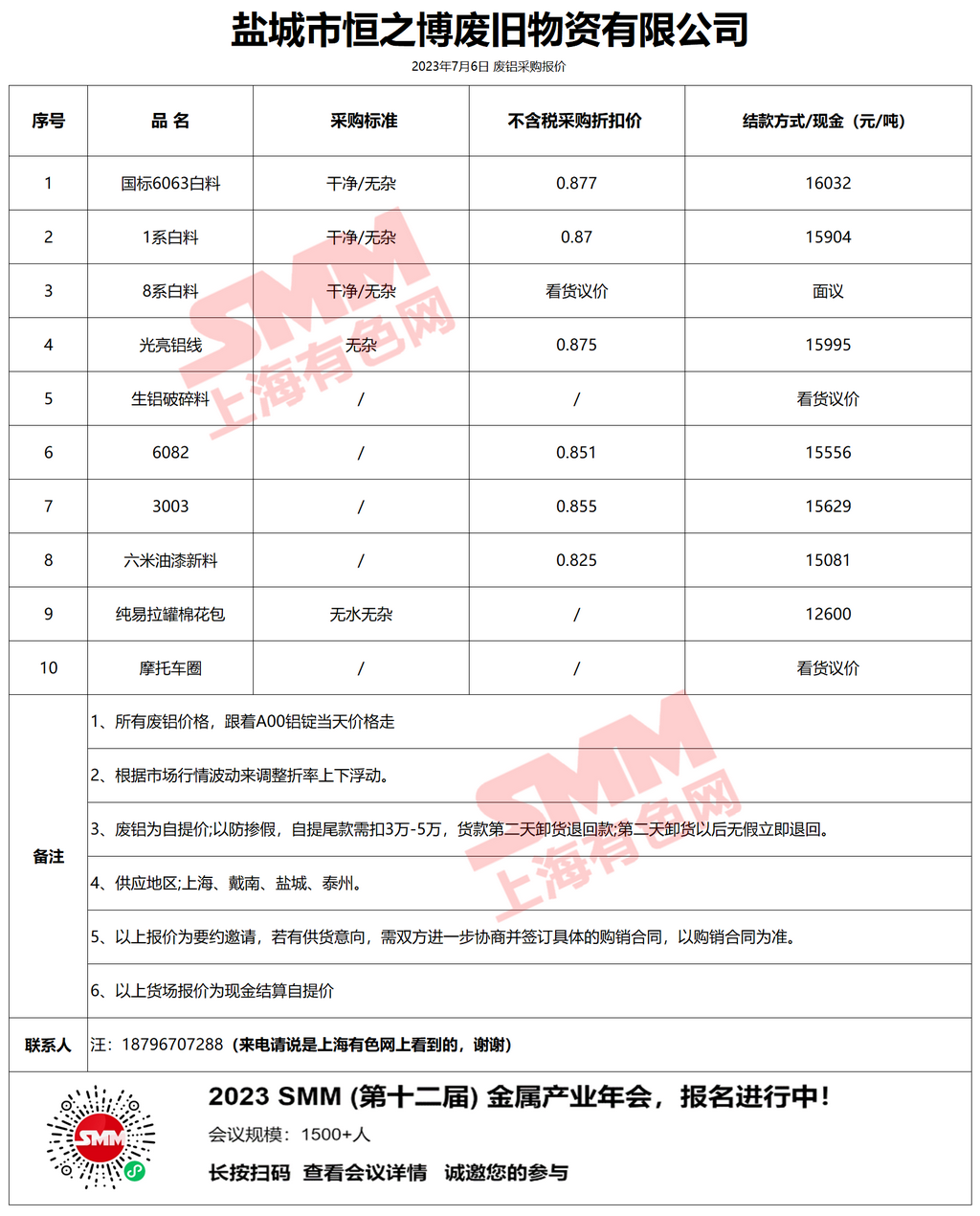 今日盐城市恒之博 废铝采购报价已更新,有货的朋友欢迎联系我们!