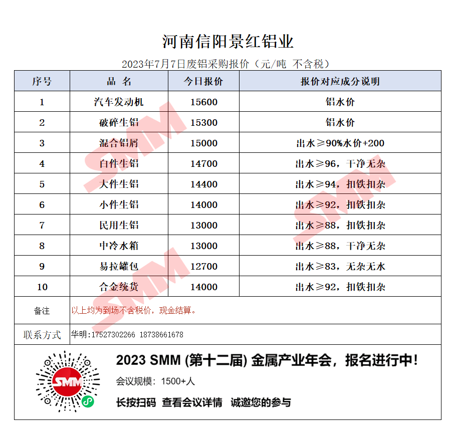今日河南信阳景红铝业 废铝采购报价已更新,有货的朋友欢迎联系我们!