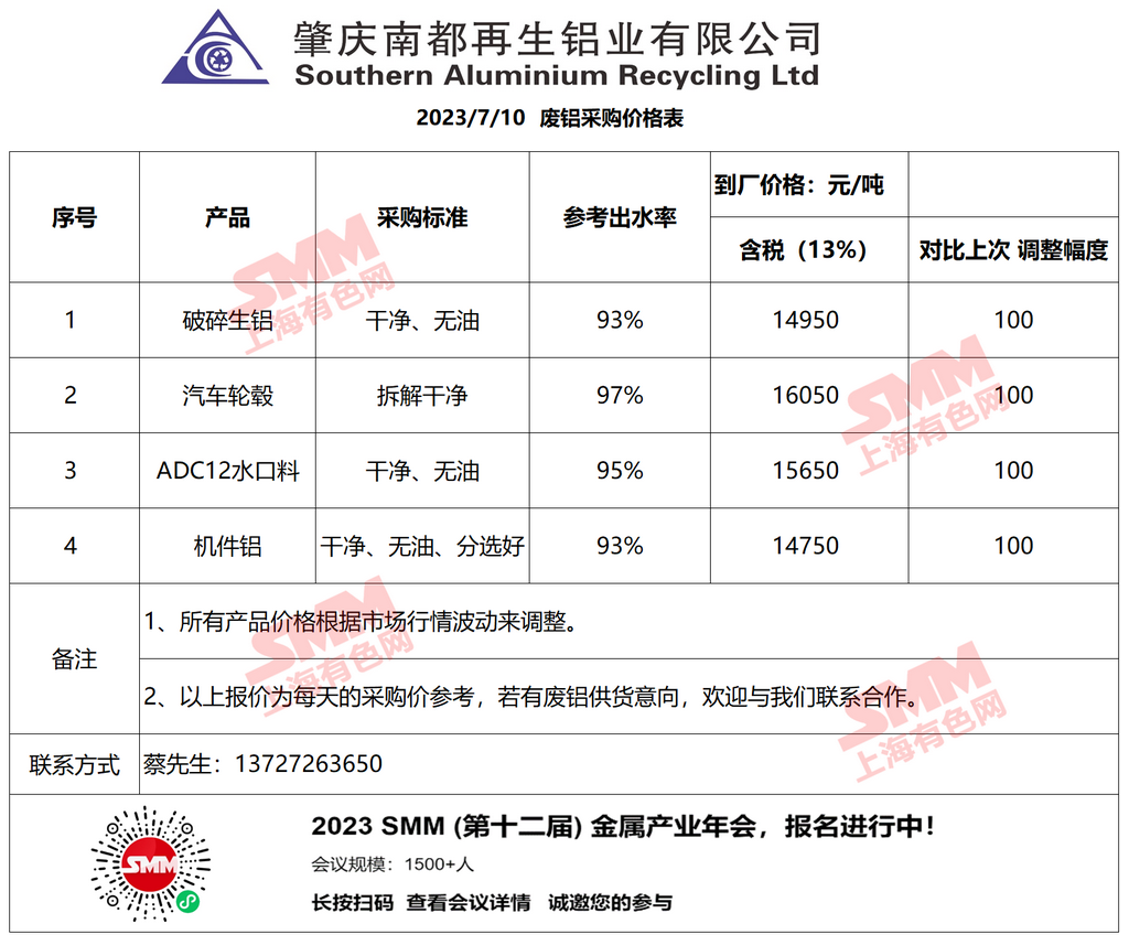 今日南都再生铝业 废铝采购报价已更新,有货的朋友欢迎联系我们!