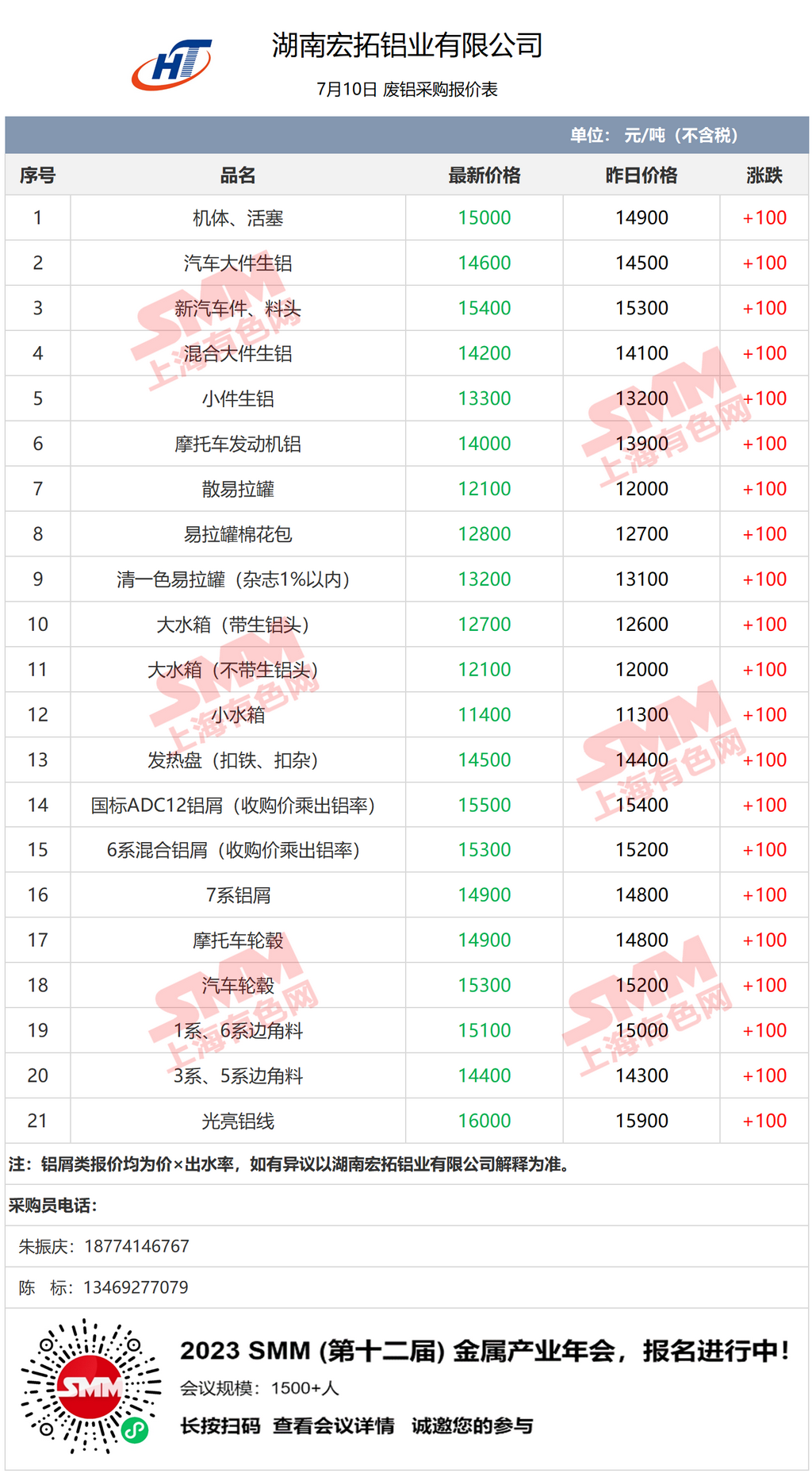 7月10日湖南宏拓铝业 废铝采购报价