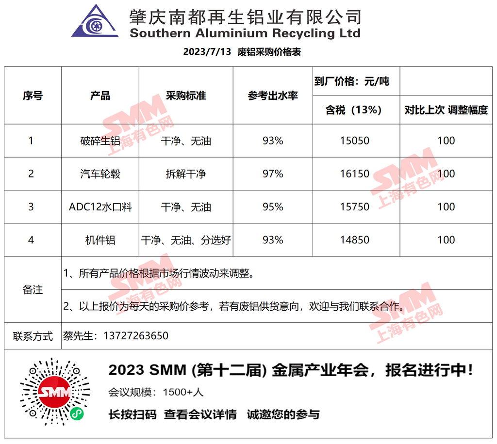 今日南都再生铝业 废铝采购报价已更新,有货的朋友欢迎联系我们!