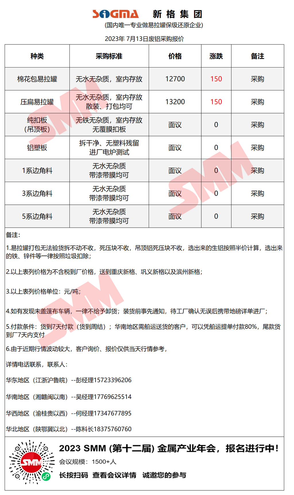 今日新格集团 废铝采购报价已更新,有货的朋友欢迎联系我们!