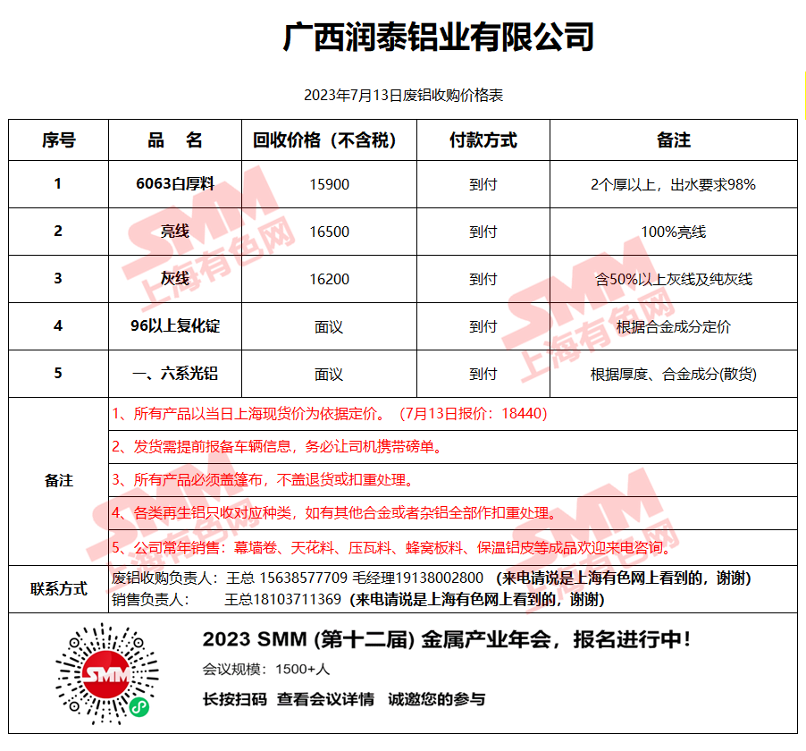 今日广西润泰铝业 废铝采购报价已更新,有货的朋友欢迎联系我们!
