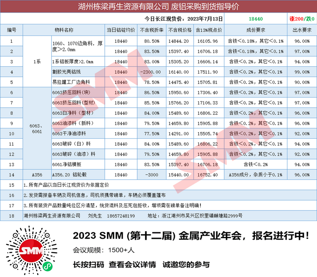 7月13日湖州栋梁再生 废铝采购报价