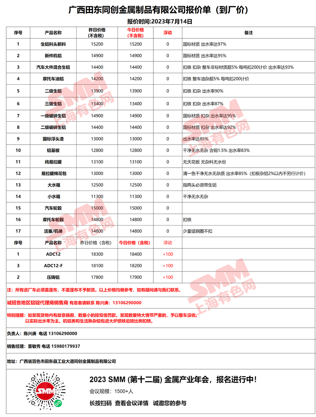 今日广西田东同创金属制品有限公司 废铝采购报价已更新,有货的朋友欢迎联系我们!