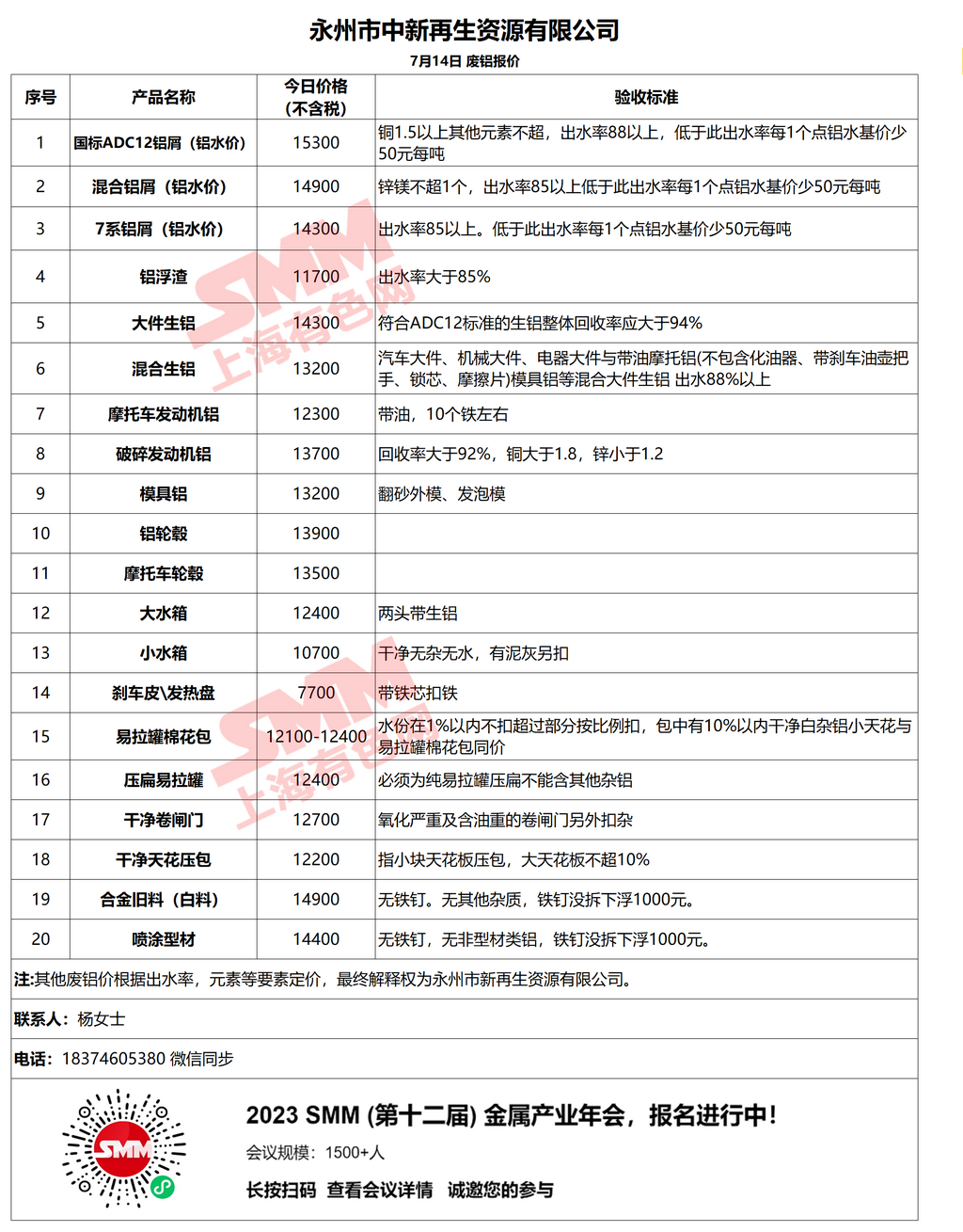 今日永州市中新再生资源有限公司 废铝采购报价已更新,有货的朋友欢迎联系我们!