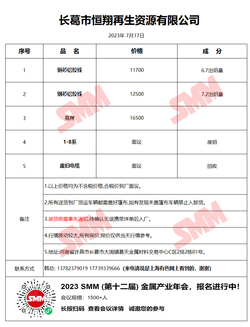 今日长葛恒翔 废铝采购报价已更新,有货的朋友欢迎联系我们!
