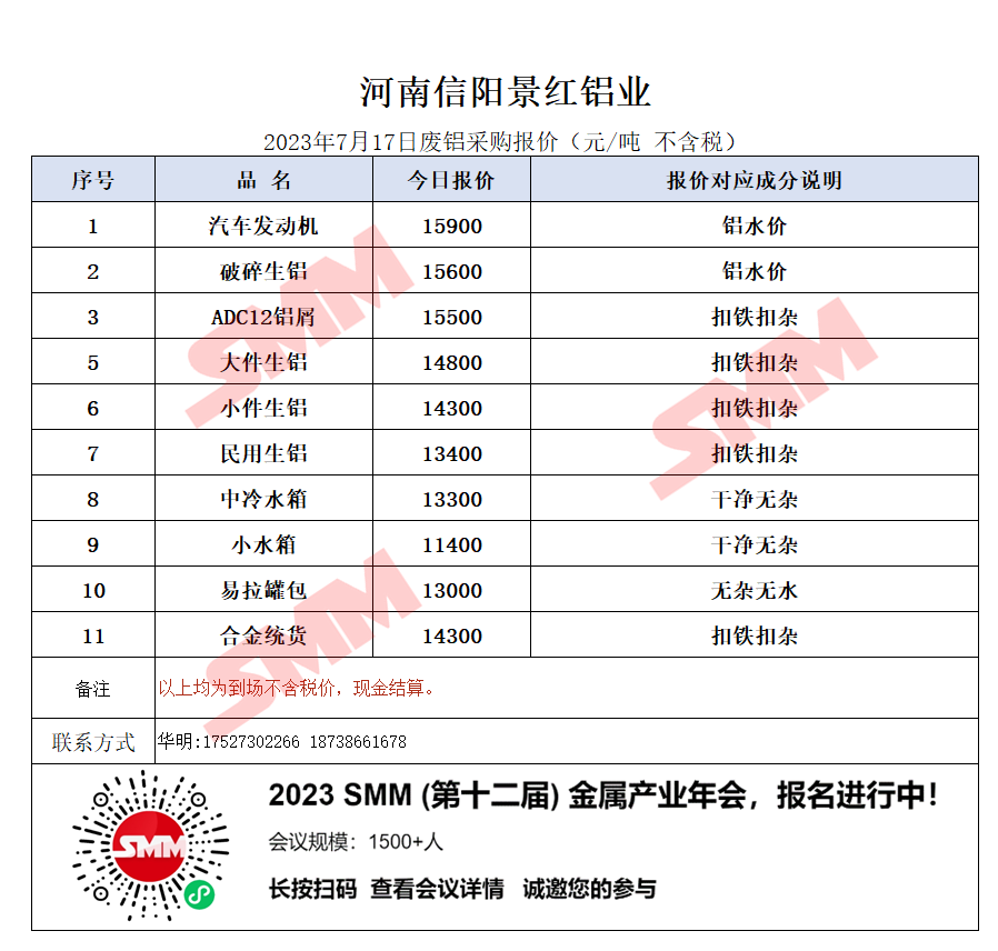 今日河南信阳景红铝业 废铝采购报价已更新,有货的朋友欢迎联系我们!