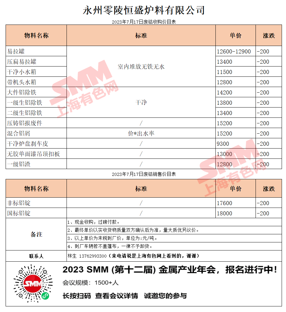 今日湖南恒盛 废铝收购报价已更新,有货的朋友欢迎联系我们!