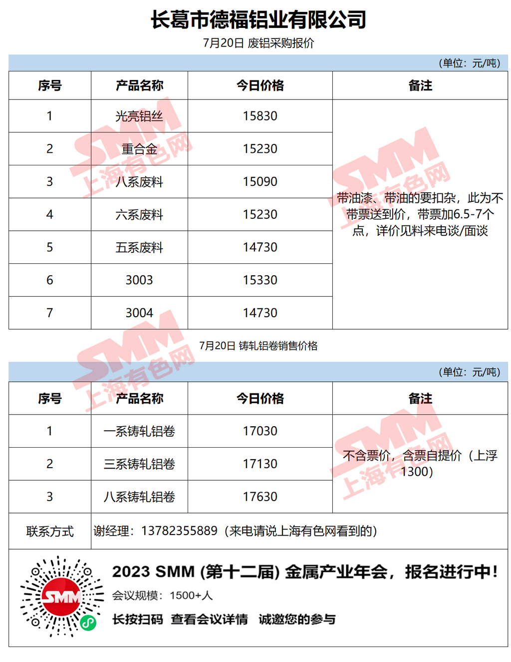 今日长葛德福铝业 废铝采购报价已更新,有货的朋友欢迎联系我们!