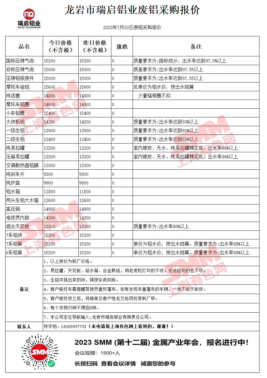 今日龙岩瑞启 废铝采购报价已更新,有货的朋友欢迎联系我们!