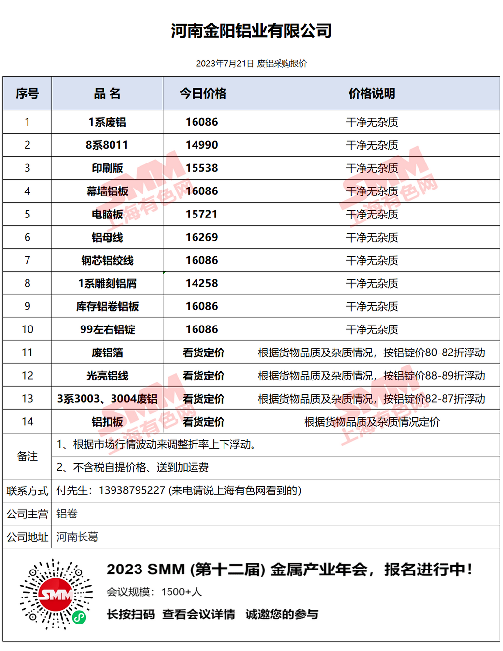 今日河南金阳铝业有限公司 废铝采购报价已更新,有货的朋友欢迎联系我们!