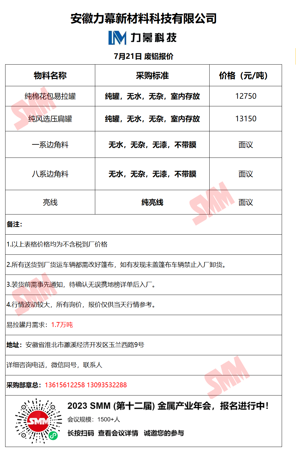 今日安徽力幕新材料科技有限公司 废铝采购报价已更新,有货的朋友欢迎联系我们!