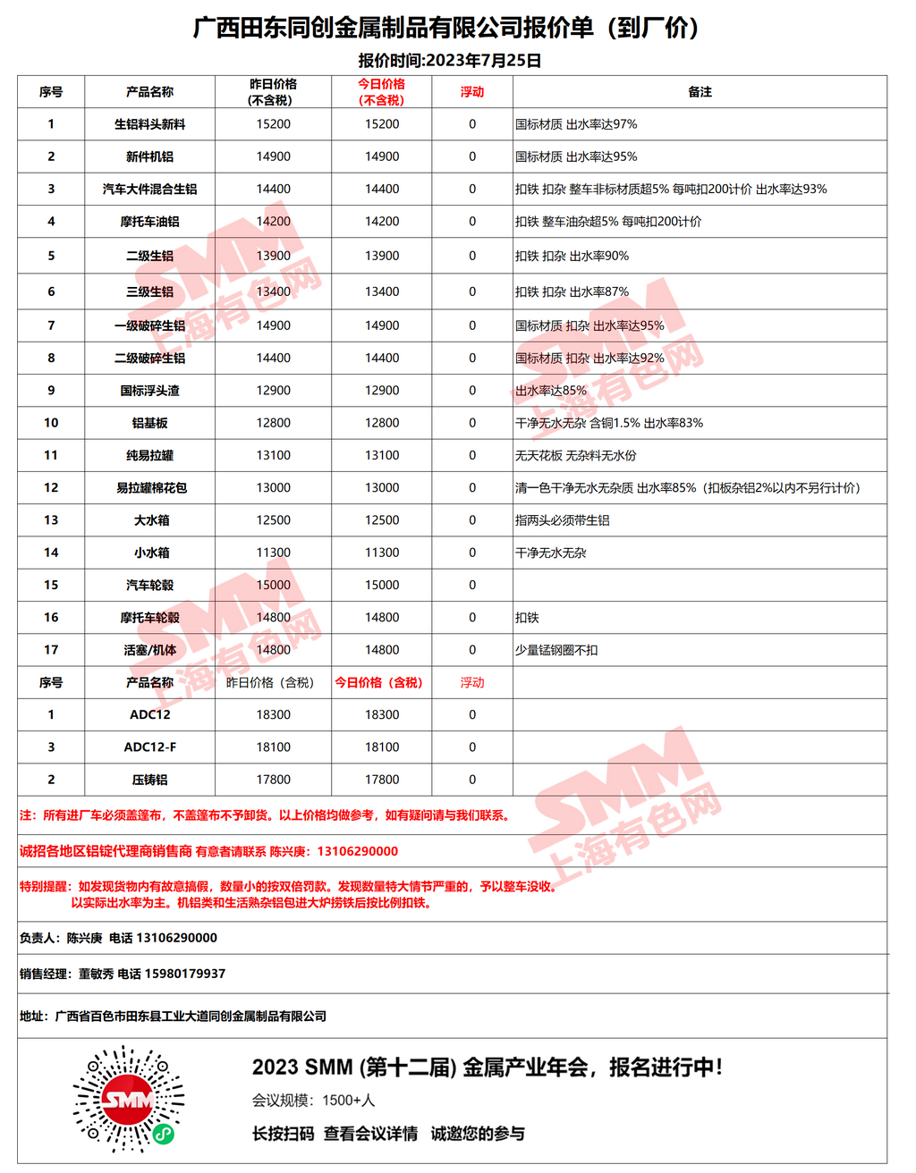 今日广西田东同创金属制品有限公司 废铝采购报价已更新,有货的朋友欢迎联系我们!