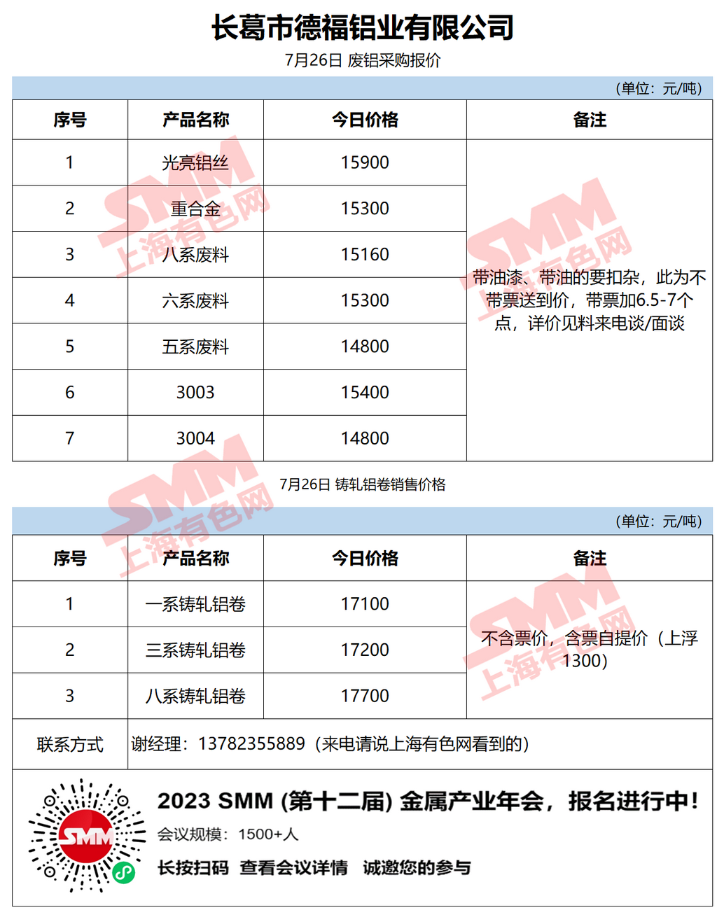 今日长葛德福铝业 废铝采购报价已更新,有货的朋友欢迎联系我们!
