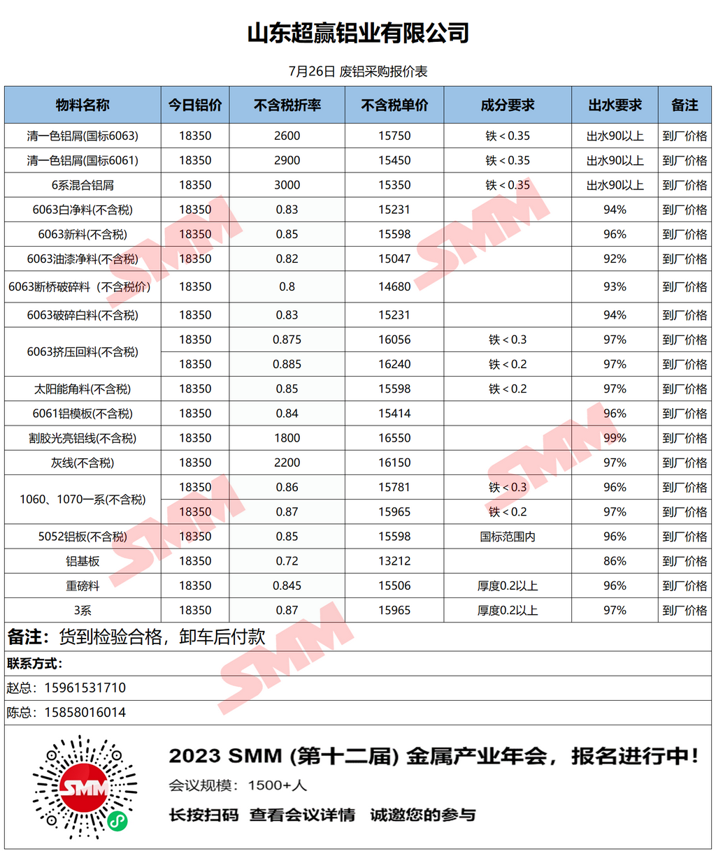 今日超赢铝业 废铝采购报价已更新,有货的朋友欢迎联系我们!