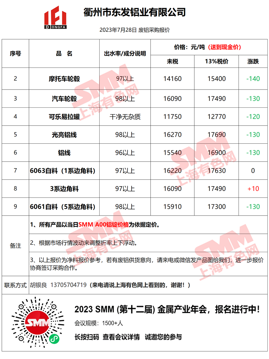 今日衢州东发 废铝采购报价已更新,有货的朋友欢迎联系我们!