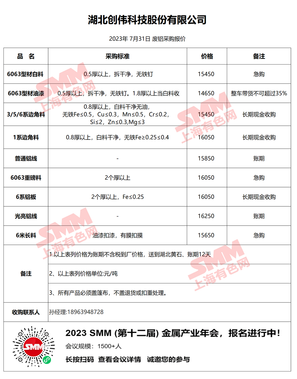 再生金属企业报价合作需求,欢迎联系:13585952056 王