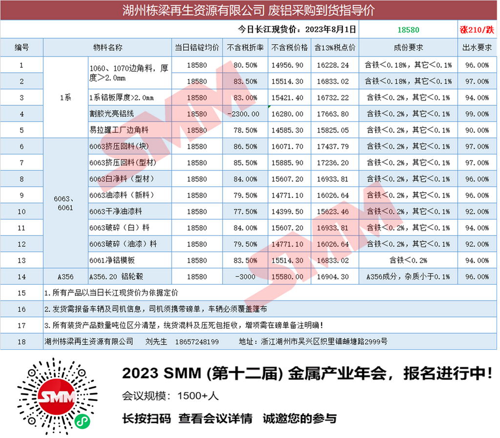 8月1日湖州栋梁再生 废铝采购报价