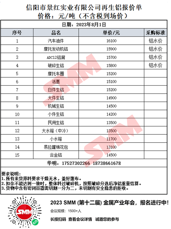 8月1日河南景红 废铝采购报价