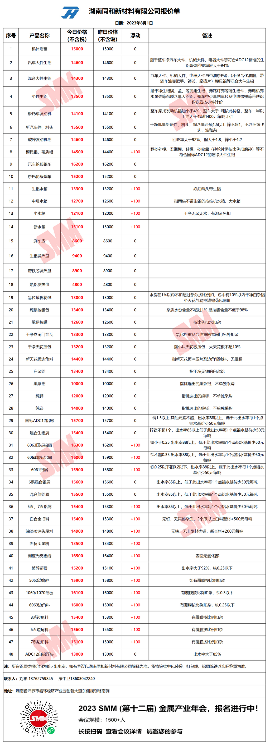 今日湖南同和 废铝采购报价已更新,有货的朋友欢迎联系我们!
