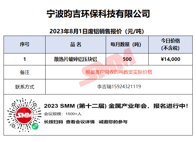 8月1日宁波昀吉 废铝销售报价
