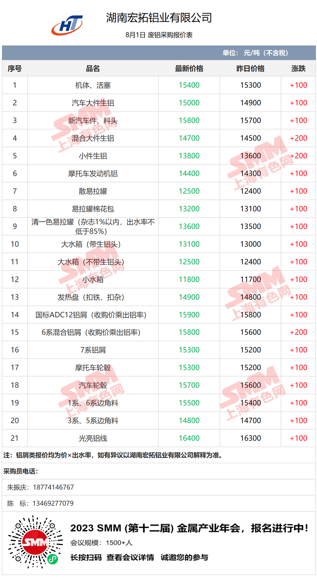 今日湖南宏拓铝业 废铝采购报价已更新,有货的朋友欢迎联系我们!