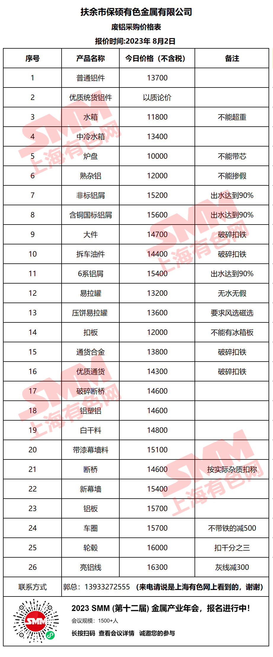 今日扶余市保硕有色金属有限公司 废铝采购报价已更新,有货的朋友欢迎联系我们!