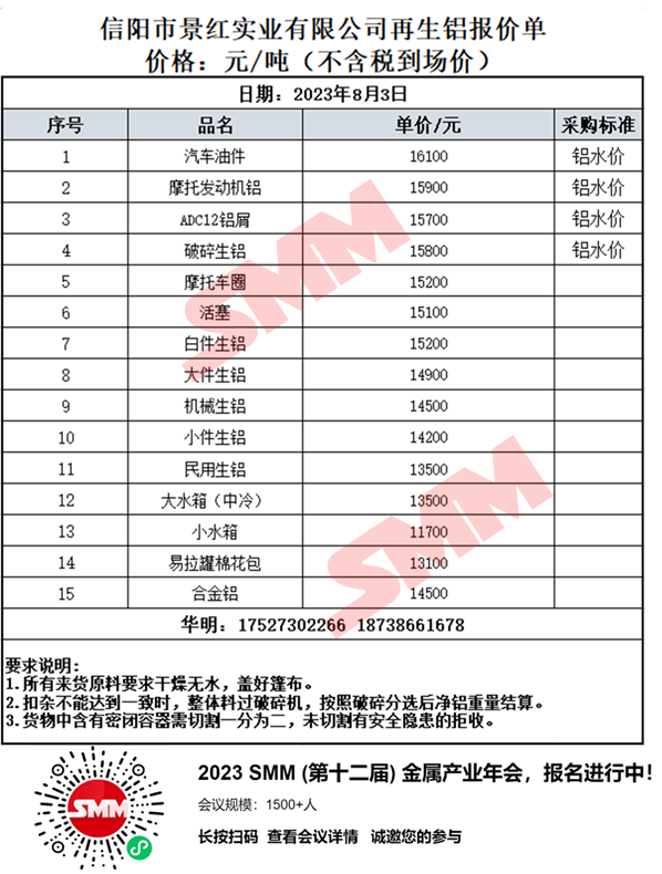 今日河南信阳景红铝业 废铝采购报价已更新,有货的朋友欢迎联系我们!