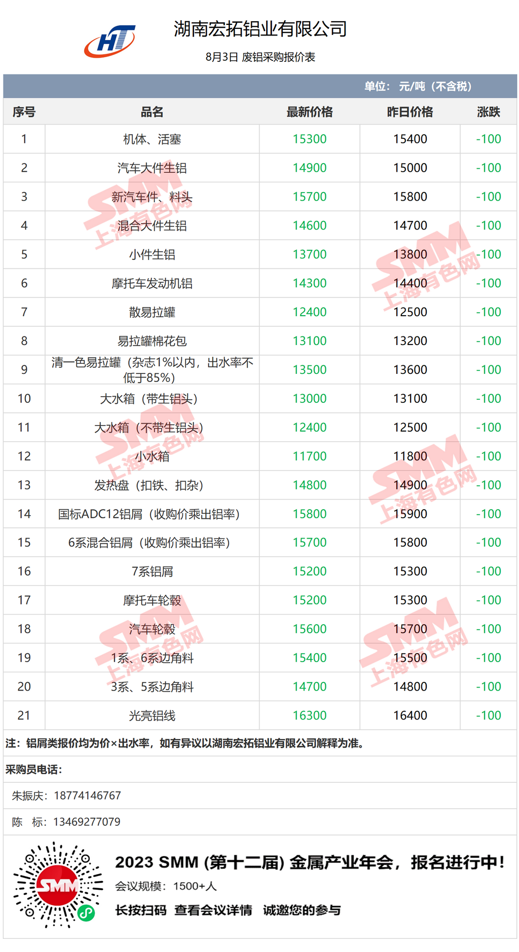 8月3日湖南宏拓铝业 废铝采购报价