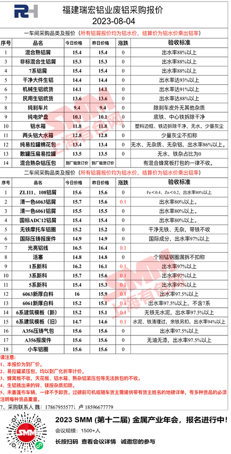 今日福建瑞宏 废铝采购报价已更新,有货的朋友欢迎联系我们!