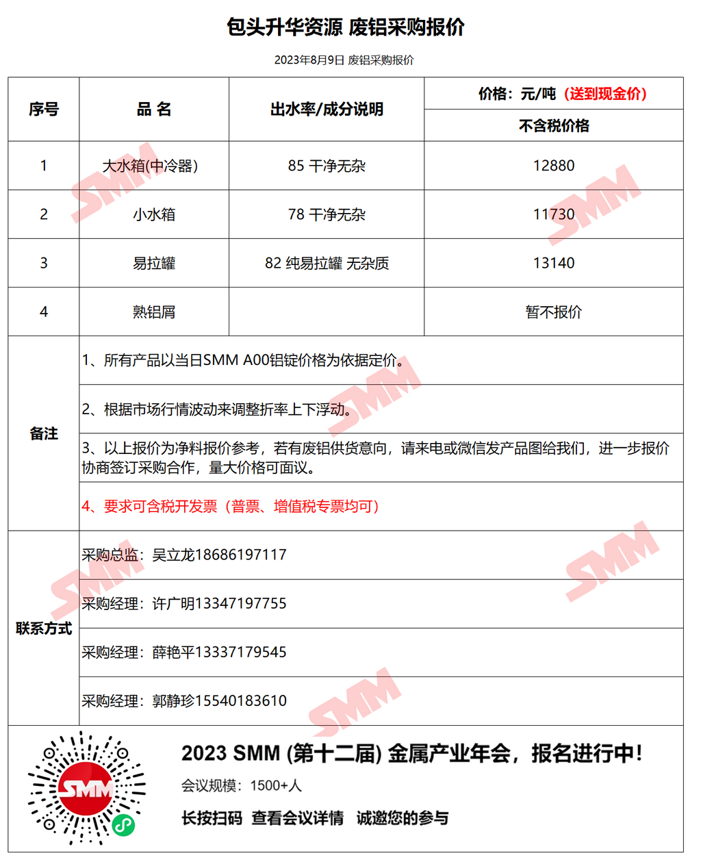 今日包头升华 废铝采购报价已更新,有货的朋友欢迎联系我们!