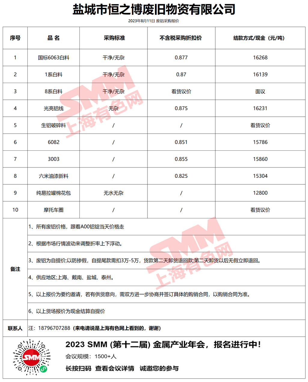 今日盐城市恒之博 废铝采购报价已更新,有货的朋友欢迎联系我们!