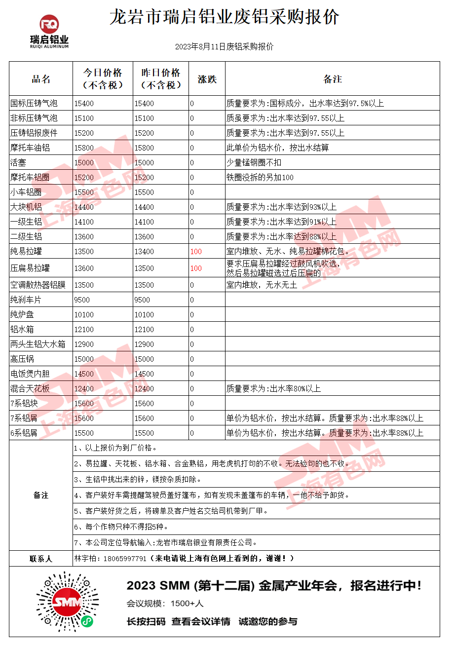 今日龙岩瑞启 废铝采购报价已更新,有货的朋友欢迎联系我们!