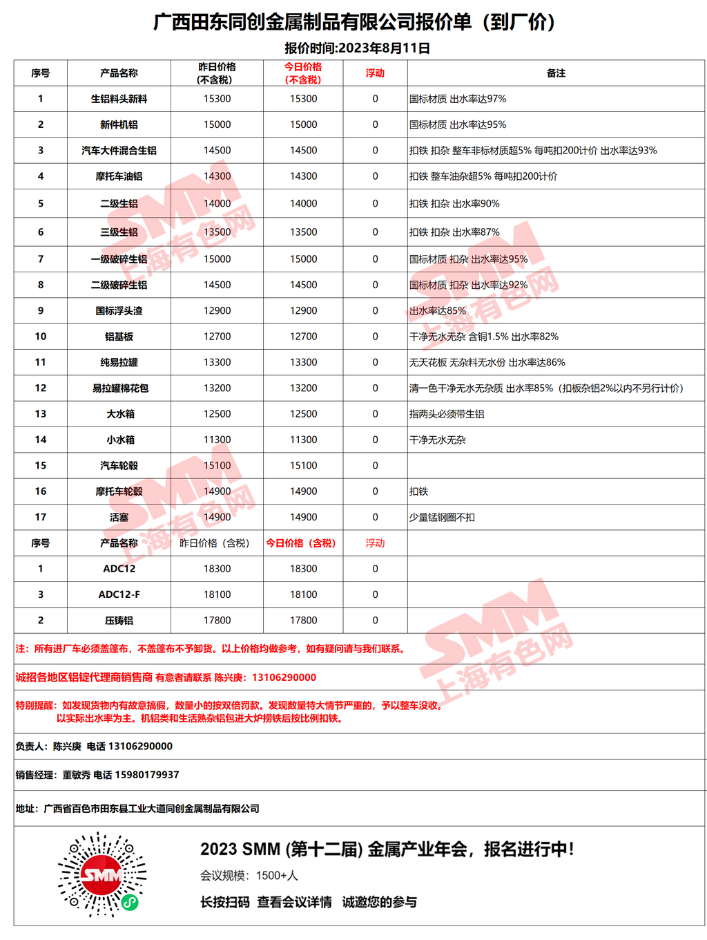 今日广西田东同创金属制品有限公司 废铝采购报价已更新,有货的朋友欢迎联系我们!