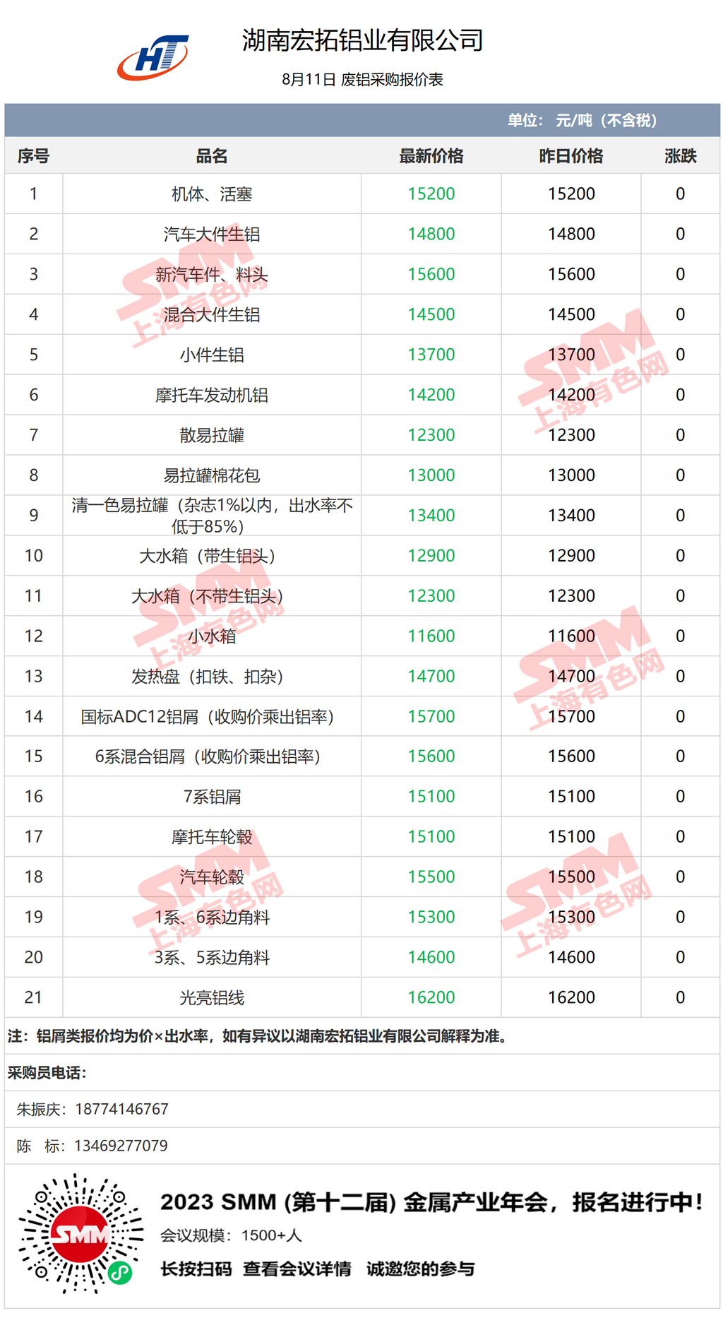8月11日湖南宏拓铝业 废铝采购报价